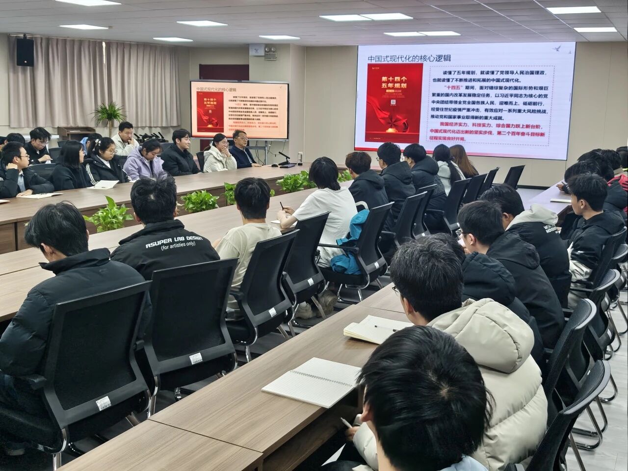 孟昭博以“对准历史新坐标 做新时代好青年”为题展开分享。他围绕中国式现代化的历史定位与核心内涵、青年马克思主义者的使命担当、青年成长成才的实践路径三个方面,详细介绍了中国式现代化的主要特征与核心逻辑。他还结合历史发展脉络,阐明了青年在新时代应有的担当,并从理论学习、实践锻炼、品格修养给出具体成长建议,寄语学生在学习实践中锤炼本领、绽放青春光彩。