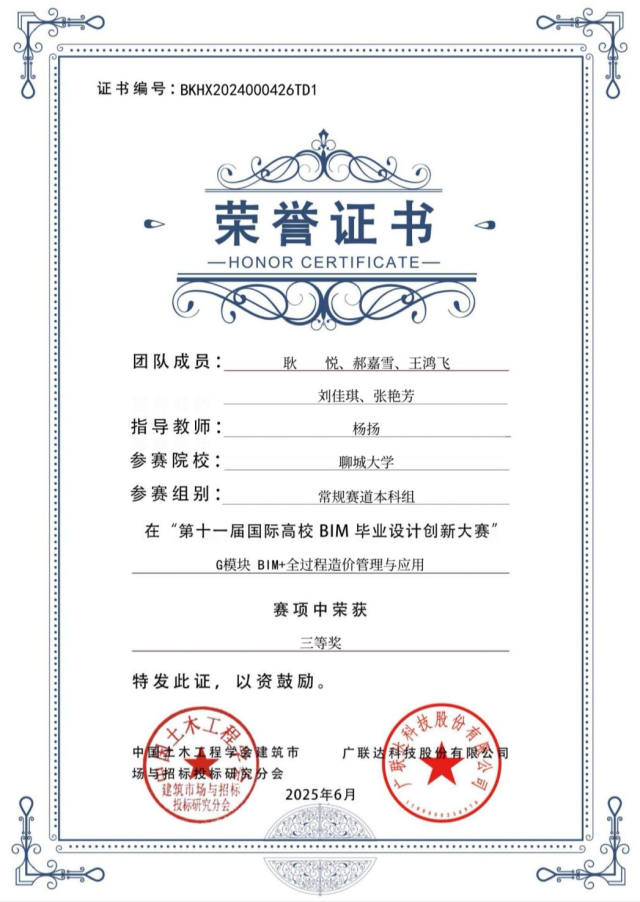 恭喜我院2024级优秀学生刘芳芳在第十一届“国际高校BIM毕业设计创新大赛”中,荣获团队二等奖,2023级优秀学生张艳芳、2023级优秀学生鲁守金荣获团队三等奖。