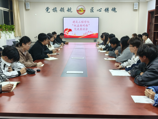 11月16日,建筑工程学院权益服务部于5#A207举办“权益面对面”交流座谈会,学院辅导员王岱龙、曲红红、贾文斌及部分学生代表参加。