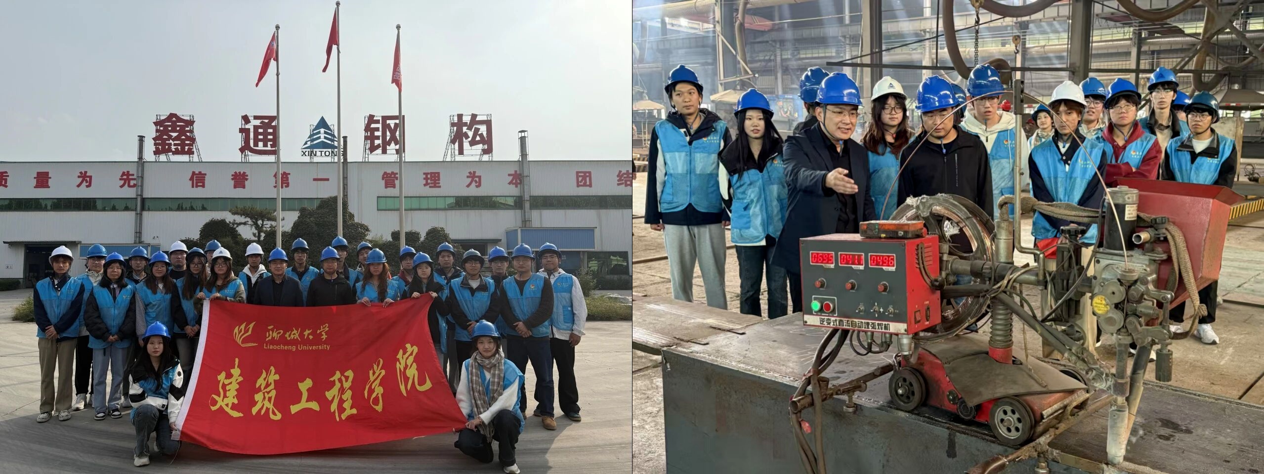 走进山东鑫通钢结构工程有限公司生产车间,企业负责人为同学们讲解车间操作安全注意事项,随后带领同学们依次参观了原材料储存区、切割加工区、焊接成型区、表面处理区及质量检测区。在焊接区域,技术人员重点介绍二氧化碳气体保护焊、自动埋弧焊等工艺的技术特点及钢构件拼装中的具体应用。同学们认真聆听、不时提问,纷纷表示实地观摩让课本里的专业知识“活”了起来,清晰地看到了钢材从原料到成品的全加工流程,同时通过现场观察,对不同工艺如何适配实际需求有了更透彻的理解。