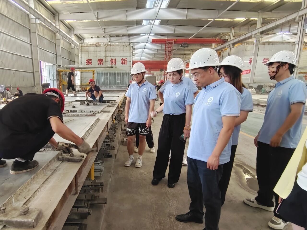 山东冠县美安复合材料有限公司成立于2017年,总部位于冠县经济开发区,注册资本5000万元,主要从事钢压延加工、隔热隔音材料制造及新型建筑材料研发生产,拥有“冠县美安”自主品牌。在美安绿色建材产业园,团队详细了解了预制板块的制作工序,对装配式产业的发展历史、发展格局、产业转型升级和高质量发展的情况有了更全面的认识。