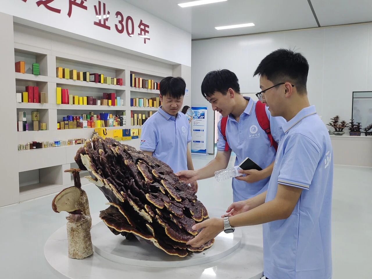冠县灵芝享美誉,历史悠久产业盛。"冠县灵芝"被评为国家地理标志产品和地理标志证明商标。在国兴灵芝科技示范园,团队了解到冠县灵芝产量占到全国50%以上,交易量占全国60%左右,是全国最大的灵芝种植和贸易基地,有专业种植户2200余户,从业人员近2.2万人,年产各类灵芝子实体和灵芝孢子粉1.8万余吨,盆景100万余盆。