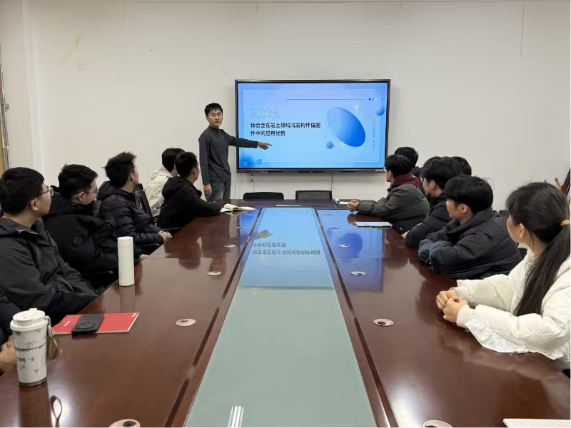 2024级研究生罗秋霖聚焦钛合金在岩土领域减震锚固构件的应用。他首先阐述了钛合金在岩土工程需求的高度适配性以及在减震、安装、结构整体性上的应用优势,再通过对比钛合金与钢、混凝土的性能优劣分析其技术创新价值与市场需求带来的广阔前景。互动环节,他耐心回答同学们的问题并鼓励同学们勇于探索新兴领域与科研新路径。