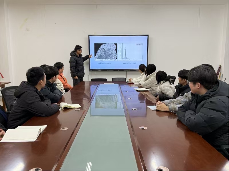 2025级研究生王宁以黄河超细砂混凝土为研究对象作专题分享。他首先介绍“宏观性能测试+微观结构观察”联动分析体系的搭建情况,同时阐释该项目在高效利用黄河流域闲置砂资源以及助力工程领域碳减排目标实现中的实践价值。此外,他结合自身经验,系统讲解了报告中成果呈现、问题剖析、后续规划的逻辑框架,为同学们提供了兼具实操性与参考性的清晰范例。