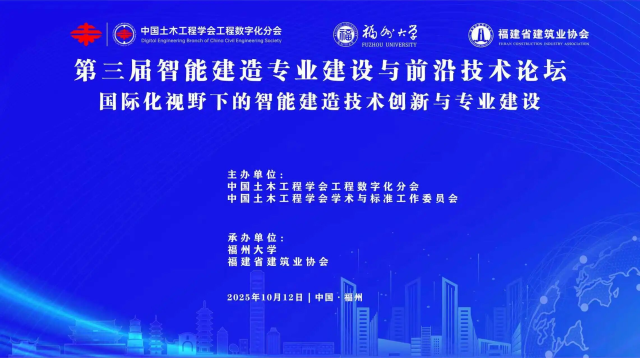 为主动应对建筑业数字化转型浪潮,精准把握智能建造专业发展前沿,推动我院学科交叉融合与专业建设水平提升,2025年10月11日至13日,我院智能建造系主任杨秀英带领青年教师,赴福建福州参加“第三届智能建造专业建设与前沿技术论坛”。本次论坛以“国际化视野下的智能建造技术创新与专业建设”为主题,汇聚了全国300余位该领域的知名专家学者、高校及企业代表,共商智能建造发展大计。