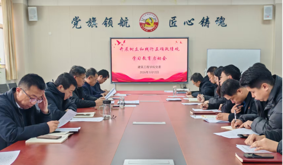 3月12日上午,建筑工程学院党委在207党建活动室,召开党委(扩大)会议,研究审议学院开展树立和践行正确政绩观学习教育工作安排,正式启动学院学习教育工作。学院领导班子成员、党支部书记及支部委员、党委组织员、分工会主席、团委书记等参加启动会,学院党委书记宗传军主持会议。